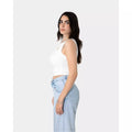 Fitted sleeveless cropped top with a fully double-layered front for added coverage.