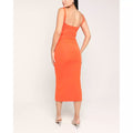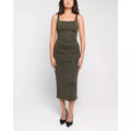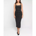 Sleek fitted midi dress with a flattering square neckline and wide straps.